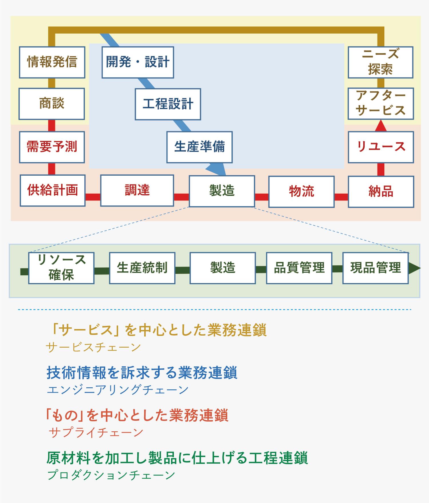 SMDGでは、4つのチェーンで構成されるマニュファクチャリングチェーンを整理し、各部門の情報を整流化して全体最適を目指す。生産技術部担当部長の酒匂良和さんは「SMDGでは製造業における生産部門の役割を事業全体のチェーンと組み合わせて整理できています。4つのチェーンで構成されるものづくりの全体像は、異なる製品やプラント設備にも共通する基盤として活用できます。この全体像を皮切りにそれぞれの製品で機能間の連携、チェーンの最適化など個別の検討が可能になります。それにより製造の部分最適に陥らず、大局を見据えた全体最適につながることに期待しています。その結果、生産部門におけるDXは俯瞰した視点でのアプローチが可能になる」と確言した。