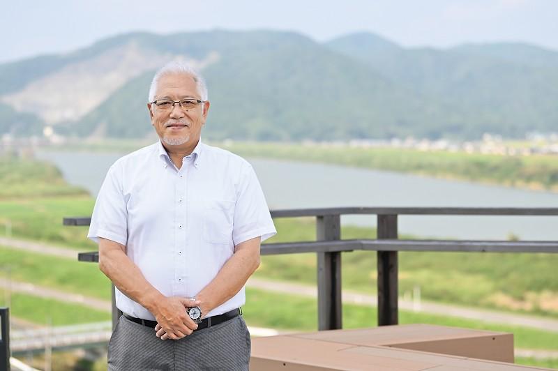 代表取締役社長・今野康正さん。背後に見えるのは東北の母なる川・北上川