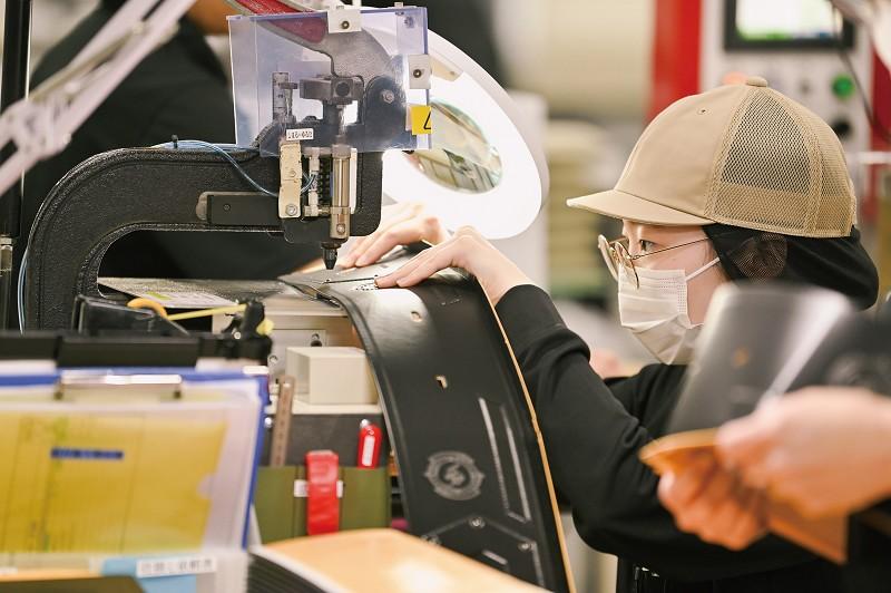ランドセルの製造現場では、立体のフォルムを縫う作業など随所で巧みな技術を必要とする。だからこそ、作業の標準化や見える化の推進も不可欠だった。