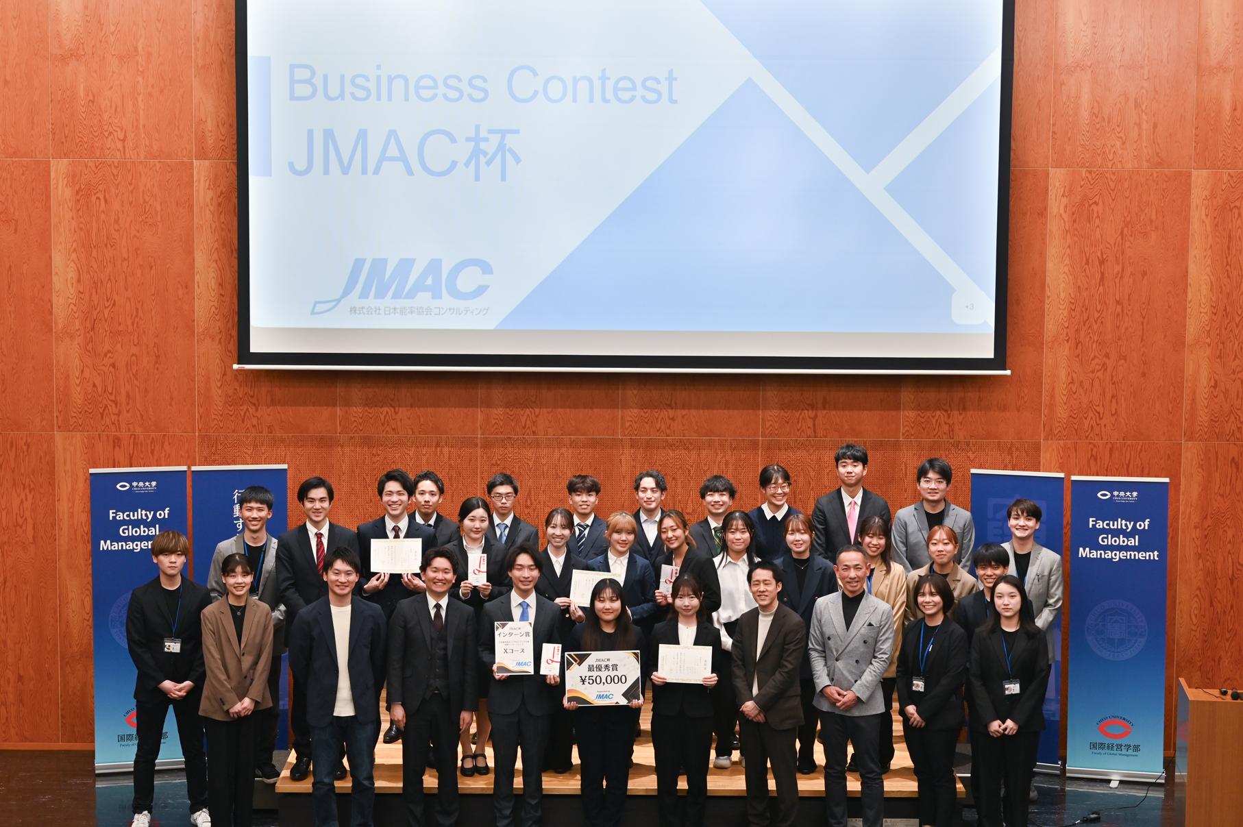 このビジネスコンテストでは、国際経営学部でさまざまな分野を学ぶ学生が、各々が考えた新事業を発表し、マネジメントの専門家であるJMACコンサルトが直接フィードバックを行います。