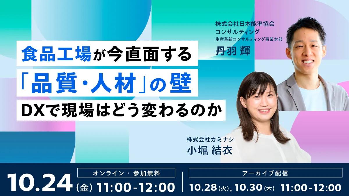 株式会社カミナシが主催するセミナー「食品工場が今直面する『品質・人材』の壁 DXで現場はどう変わるのか」にJMACチーフ・コンサルタント 丹羽輝が登壇いたします。